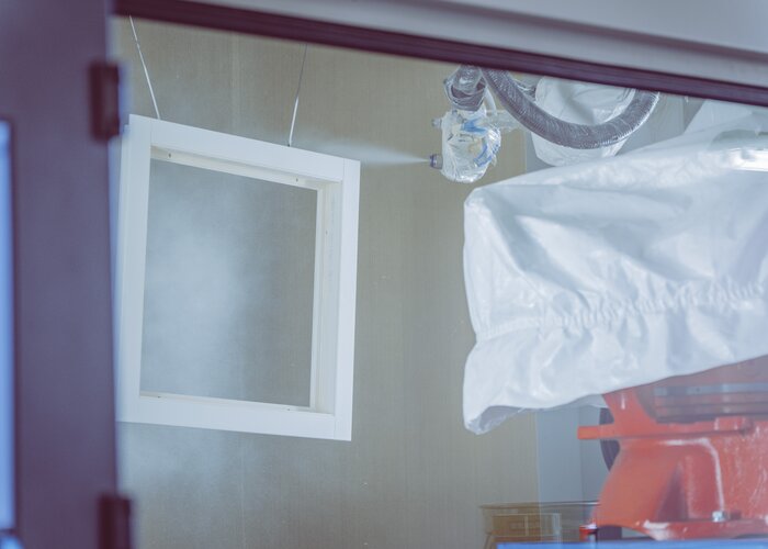 Lakovanie robotom je zvlášť vhodné pre veľkoformátové 3D diely, ako sú dvere alebo okenné rámy, a umožňuje vám vyrábať drevené komponenty (napr. pre proces výroby nábytku) s trvale vysokou kvalitou povrchu.