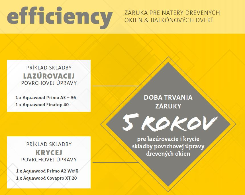 - 5 rokov na lazúrovacie i krycie skladby povrchovej úpravy drevených okien