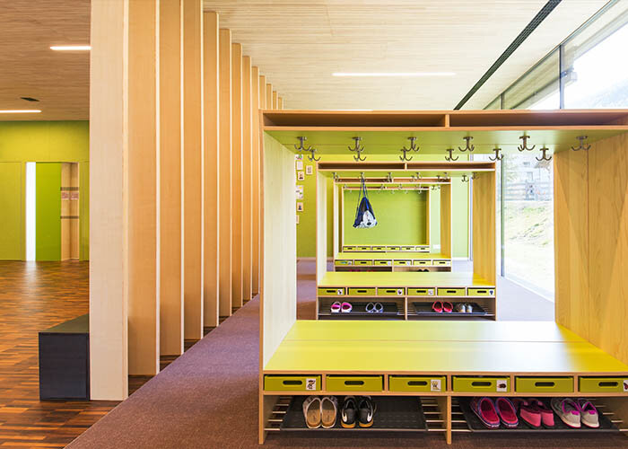 Spoločenský dizajn sa tiež odráža v stavebných metódach a materiáloch: "Budova je postavená v hybridnej konštrukcii, zvolili sme materiály šetriace zdroje," vysvetľuje Fuchs. Drevo je preto ústredným stavebným materiálom, ako vo vnútri, tak vonku; zušľachtené s nátermi ADLER, tiež vnútri aj vonku.