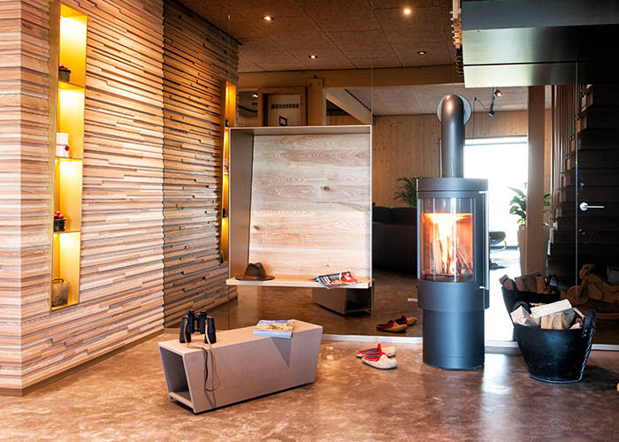 Keď Boschert začal so svojím projektom, plánovanie bolo do značnej miery dokončené, ale veľa nápadov vznikalo aj počas výstavby - a práve tieto láskyplne navrhnuté detaily tvoria kúzlo jedinečného hosťovského domu: ako na chodbe na prvom poschodí, kde Boschert použil staré dosky zo stodoly alebo schody, ktoré skutočne úpútajú! Medzery v knižnici Boschert vyplnil čiernym Woodfill-Reparaturspachtel, ktorý dodáva na svetlo-morenom dreve tomuto kusu nábytku atmosférický nádych, horiace červené obloženia stien z medi a tmavé tyče zábradlia - takmer ako zo Snehulienky. Aj hostia letnej chaty Brennküch si vychutnajú túto fantastickú mágiu, kde sa pohľad na kopce Čierneho lesa dostáva až na druhé miesto „Akoby sme si priam želali na dovolenke niekoľko daždivých dní, aby sme si mohli poriadne užiť tento vysnený malý domček," povedal raz jeden hosť. A my to úplne chápeme!