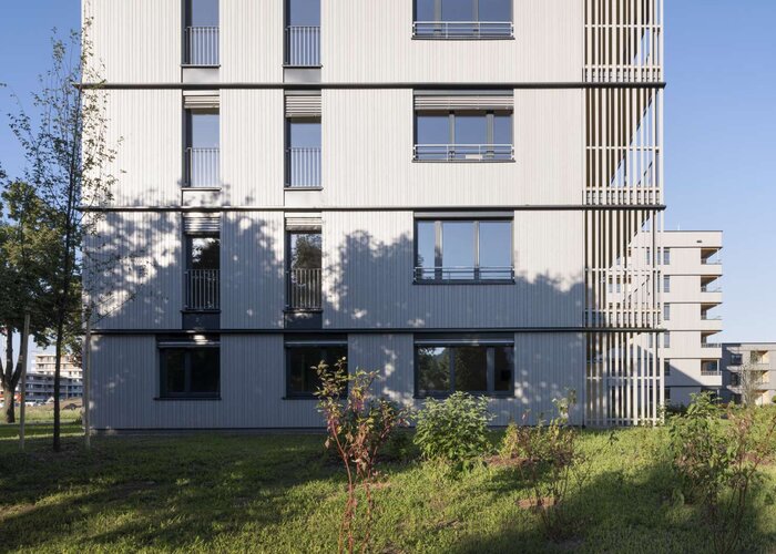 V súčasnej dobe sa v areáli Reininghaus, historického pivovaru v Štajerskom Hradci, stavia nová štvrť – alebo skôr mestečko v meste: 5 000 bytov, školský kampus, kancelárie, rozmanitá sociálna infraštruktúra a priestranné zelené plochy. Každá z 18 častí (Quartiere) je realizovaná rôznymi developermi, ktorí sa spojili v rade vlastníkov, aby dali rôznym individuálnym projektom spoločný rámec. V prípade Quartier 7 (Q7), ekologického vlajkového projektu v areáli Reininghaus, ide o neziskové bytové družstvo ENW a neziskové bytové a sídliskové družstvo Ennstal. Vypísali architektonickú súťaž, z ktorej ako víťaz vzišla architektonická kancelária balloon architekten so sídlom v Grazi. Ale presvedčivý bol aj druhý koncept od Hohensinn Architektur tiež so sídlom v Grazi. Developeri preto vzali na palubu oba tímy a pri kancelárii balloon objednali návrh troch čiastkových častí a Hohensinn Architektur dostali za úlohu spracovanie štvrtej časti na základe urbanistického konceptu od balloon architekten. V úzkej spolupráci oboch architektonických kancelárií bol realizovaný súbor stavieb, ktorý využíva možnosti moderných technológií drevostavieb a vytvára harmonické obytné priestory – uprostred mesta a pritom v zeleni.