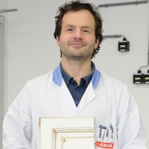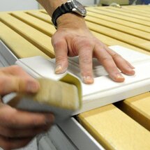 ADLER-technik Klaus Moser ukázal, ako to funguje. Je vyučený stolár a už 12 rokov pracuje vo firme ADLER ako aplikačný technik v sekcii nábytok.