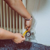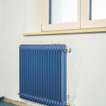 Oblepte termostatickú hlavicu, prípadné snímač teploty a prvky, ktoré nemajú byť natreté. Zakryte okolie radiátora krycou fóliou. Odmastite renovované plochy pomocou odmasťovača ADLER Entfetter.