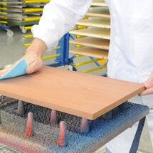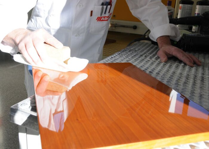 ADLER-technik Klaus Moser v zrkadle výsledku. Vyučený stolár pracuje u nás už 12 rokov v oddelení ADLER-aplikačnej techniky pre nábytkárstvo a tu nám ukázal, ako sa dostať k lesklému výsledku.
