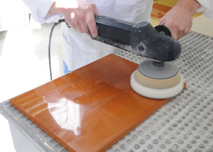 Zostatok leštiacej pasty odstrániť mikrovláknovou handrou a nakoniec, najlepšie ručne, vyleštiť politúrou na vysoký lesk. Odporúčané leštiace látky nájdete v našej smernici.