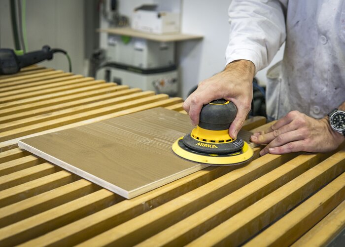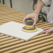 Aj tu prvým krokom, ktorý je potrebné urobiť, je vrátiť sa k brúske: Na prípravu povrchu na patinový efekt sa brúsenie vykonáva v štyroch stupňoch: 180, 240, 360 a 600.