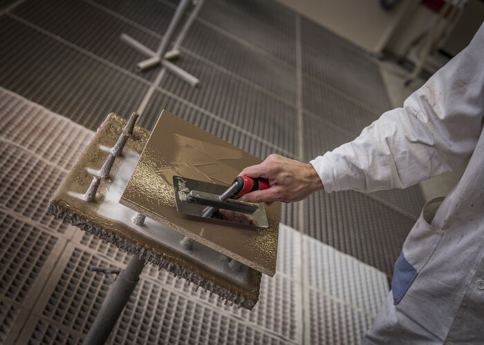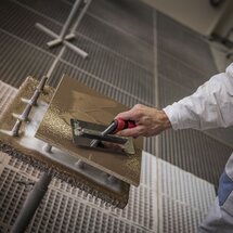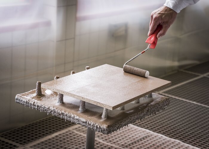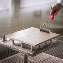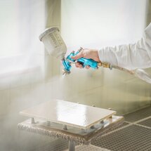 Ideálnym základom pre povrchovú úpravu ADLER so skutočnými kovmi sú plnené, fóliové drevotrieskové a MDF-dosky. Po jednorázovom nanesení PUR-Ecofill Weiß sa suchý povrch tesne pred lakovaním prebrúsi zrnitosťou 240.