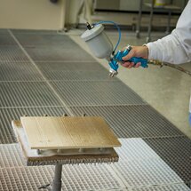 Ako obvykle naneste lak jedenkrát pomocou striekacej pištole s tlakovou nádobkou. Odporúčané nanášané množstvo je medzi 500 a 800 g na meter štvorcový. Potom by ste mali povrch nechať zaschnúť najmenej päť hodín alebo ešte lepšie cez noc.