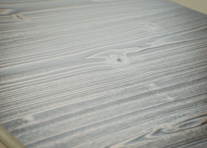 Pre vytvorenie bronzového efektu na kefovanom smreku musí byť drevo silne vykefované. Výsledkom je štruktúrovaná plocha, na ktorej efekt veľmi dobre vynikne. Aj tu sa ako plnivo používa PUR-Ecofill Weiß a vysušený povrch sa pred lakovaním jedenkrát prebrúsi brúsi zrnitosťou 240 a opäť brúsnym rúnom.