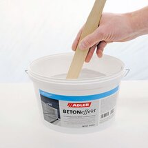 Mimoriadne dôležitá je pre prípravu efektu betónu: produkt ADLER Betoneffekt dôkladne ručne premiešajte dreveným miešadlom. V žiadnom prípade nepoužívajte elektrické miešadlo alebo podobné prístroje.