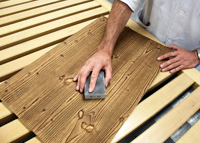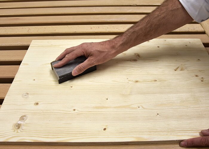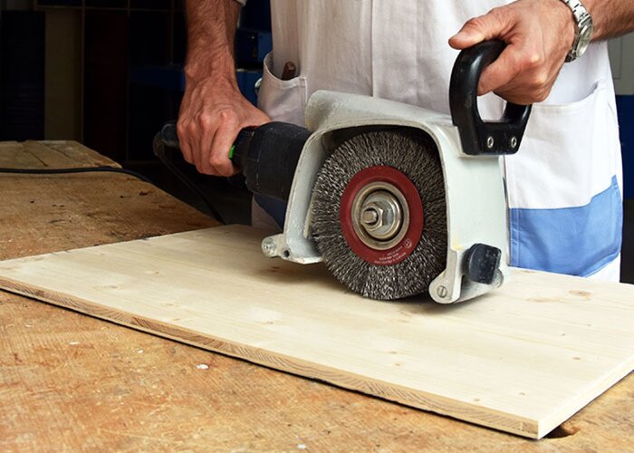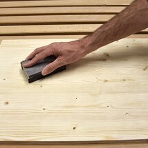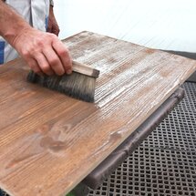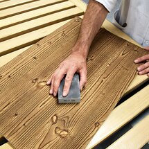Ľahko opracujte nakartáčované drevo jemným brusom so zrnitosťou 100, aby sa povrch trochu zahladil. Brúsny prach starostlivo odstráňte.