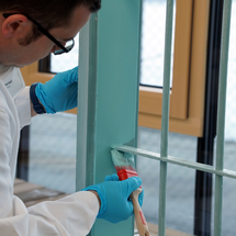 Naneste prvú vrstvu vrchného náteru ADLER Histo-Protect. Aj tu môžete pracovať so štetcom, valčekom alebo naniesť povrchovú úpravu striekaním. Nanášané množstvo je opäť maximálne cca 100 µm hrúbky mokrého filmu.