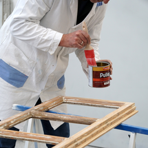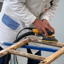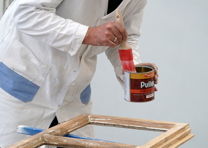 V ďalšom kroku treba čo najdôkladnejšie odstrániť starý náter. Na tento účel naneste štetcom ADLER Abbeizer Express, nechajte 30 minút pôsobiť a potom odstráňte farbu škrabkou. Alternatívne môžete farbu opáliť pomocou teplovzdušnej pištole.