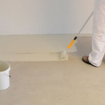 Na zníženie nasiakavosti betónovej podlahy zmiešajte základný penetračný náter Aviva Tiefengrund s vodou v pomere 1:1 a naneste kefou na podlahy. Základný náter nechajte 5 hodín zaschnúť, aby podlaha dobre absorbovala tekutinu a nezanechala lesklú vrstvu.