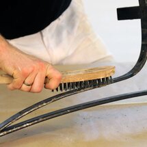 Pomocou drôtenej kefy odstráňte z kovových častí odlupujúce sa staré nátery, hrdzu a hrubú špinu.