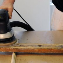 Zvetralé a zašednuté povrchy drevených častí rovnomerne a dôkladne vybrúste excentrickou brúskou (zrnitosťou 150). Brúsny prach odstráňte.