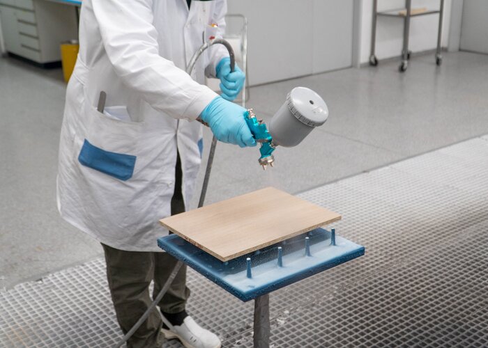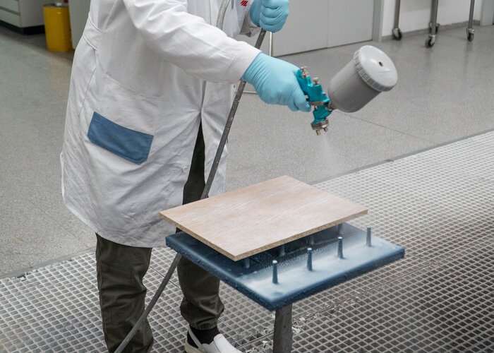 Kľúčovým slovom je tu „rovnomernosť“. Aby sa čo najlepšie izolovali prirodzené extraktívne zložky príslušného dreva a zabránilo sa tvorbe zákalov a zafarbeniu, malo by sa príslušné moridlo nanášať starostlivo a čo najrovnomernejšie. Okrem toho je pre optimálny výsledok nesmierne dôležitý výber správnej striekacej pištole s vhodnou tryskou. Dodržujte tiež odporúčané aplikačné množstvo z technického listu.