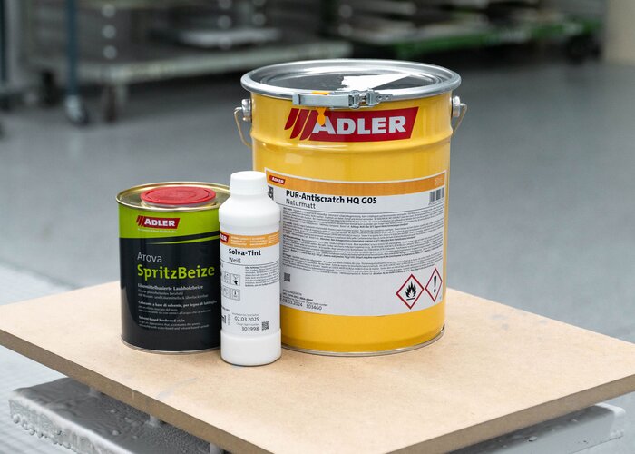 Aby sa zabránilo žltnutiu spôsobenému UV žiarením, aplikační odborníci zo spoločnosti ADLER odporúčajú zafarbiť vrstvu laku. Na zafarbenie laku použite farebný koncentrát Solva-Tint od spoločnosti ADLER. Tým sa povrch homogenizuje a vyrovnajú sa rôzne savé oblasti dreva. Týmto spôsobom si kus nábytku zachová svoj vzhľad po dlhé roky.