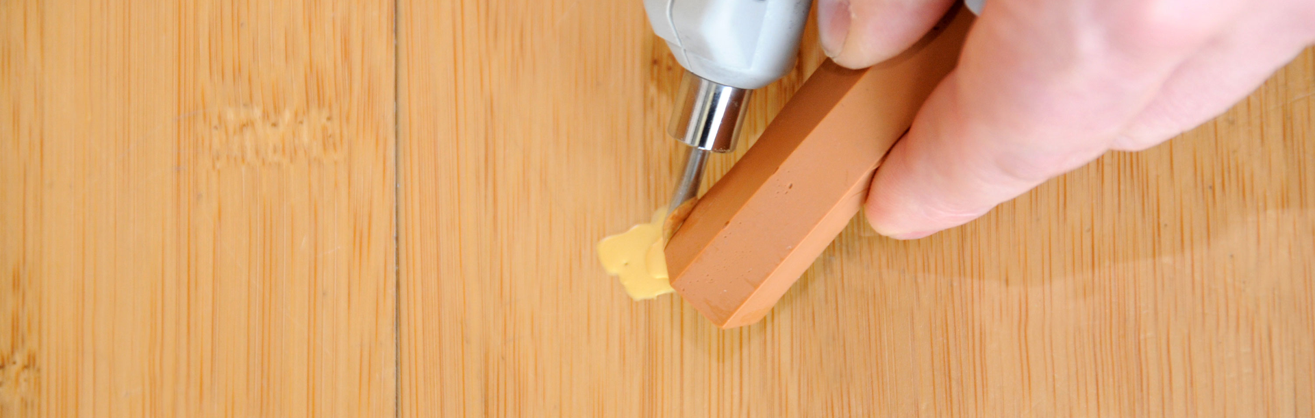 Roztavte voskovú tyčinku Grilith-Hartwachsstangen pomocou tavičky na vosk a nakvapkajte vosk do ryhy, až kým nie je zaplnená. V prípade pochybností o voľbe farebného odtieňa tvrdého vosku odporúčame zvoliť radšej tmavší odtieň.