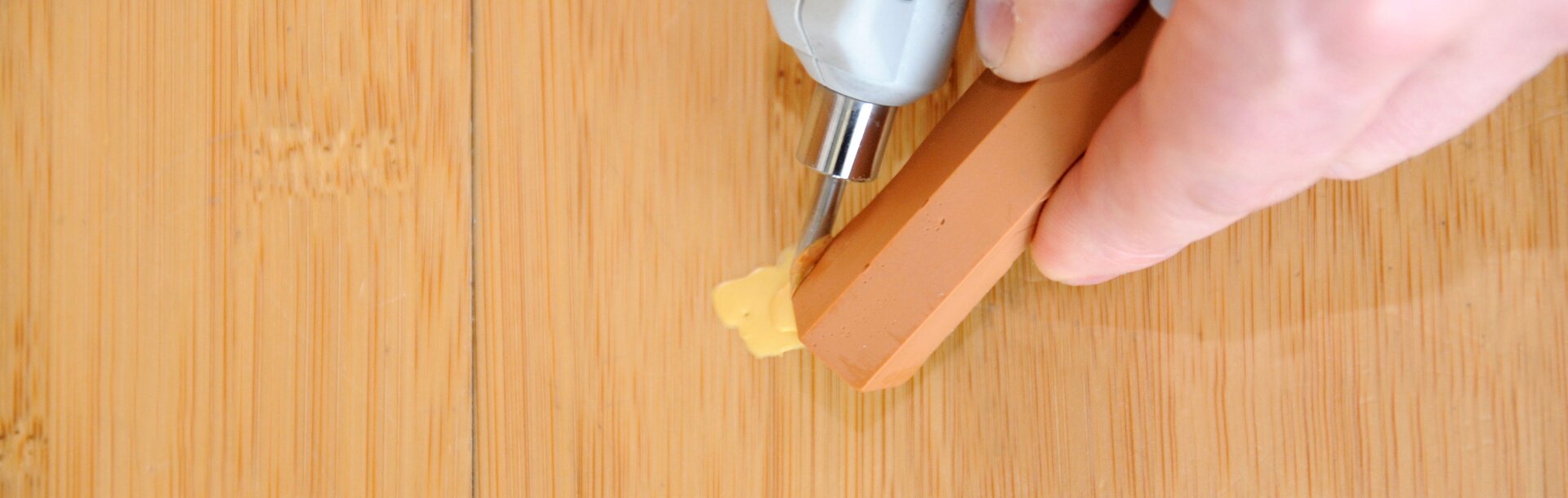 Roztavte voskovú tyčinku Grilith-Hartwachsstangen pomocou tavičky na vosk a nakvapkajte vosk do ryhy, až kým nie je zaplnená. V prípade pochybností o voľbe farebného odtieňa tvrdého vosku odporúčame zvoliť radšej tmavší odtieň.