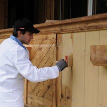 5. Po predpísanej dobe schnutia môžete vykonať prvý vrchný náter lazurou Pullex Top-Lasur v požadovanom farebnom odtieni. Aj tentokrát by ste mali natierať dosku po doske a na záver vykonajte ešte raz ťah štetcom od začiatku na koniec dosky. Takto opät zabránite viditeľným prekrytiam!
