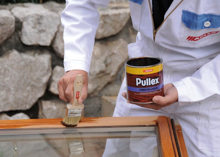 Po 12 hodinách schnutia preveďte prvý náter lazúrou na okná ADLER Pullex Top-Lasur.