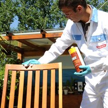 Naneste Pullex Teaköl tenko a rovnomerne handrou alebo rúnom bez chĺpkov. Pomocou prebrúsenia brúsnym rúnom dosiahnete obzvlášť hladké povrchy, čo je dôležité najmä pri stoličkách a lehátkach.