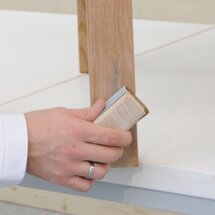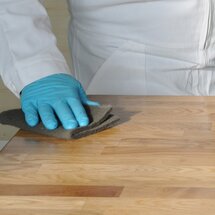 Naneste Legno-Öl alebo Legno-Hartwachsöl a prebrúste ho brúsnou hubkou (Scotch-Brite sivá). Prebytok odstráňte bavlnenou handrou.