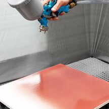 S nádobkovou pištoľou sa lak nanáša len raz, nanášané množstvo je 500 až 700 g na meter štvorcový. Potom musí povrch vyschnúť - najmenej päť hodín, ešte lepšie cez noc.