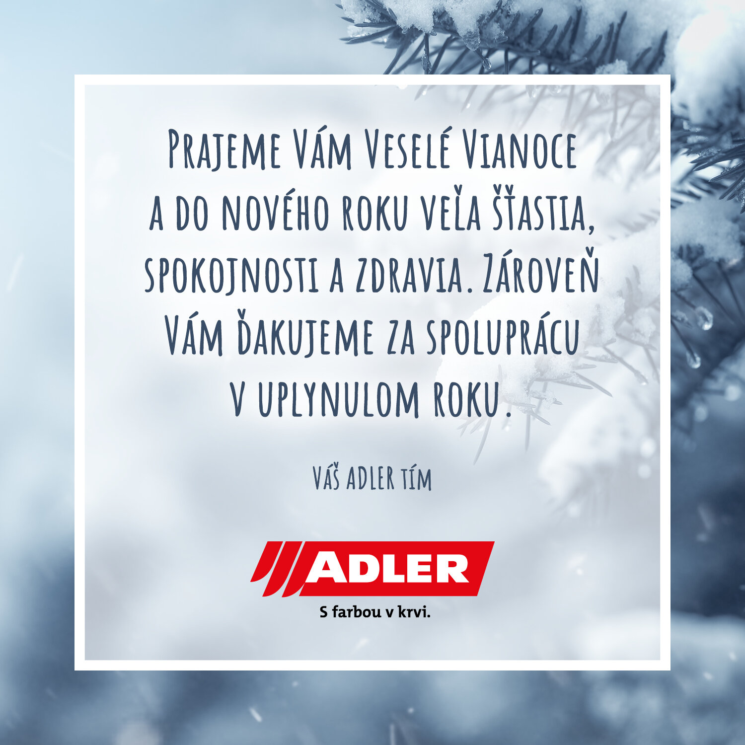 Spoločnosť ADLER Slovensko s. r. o. je počas vianočných sviatkov zatvorená od 22. 12. 2021 do 2. 1. 2022.